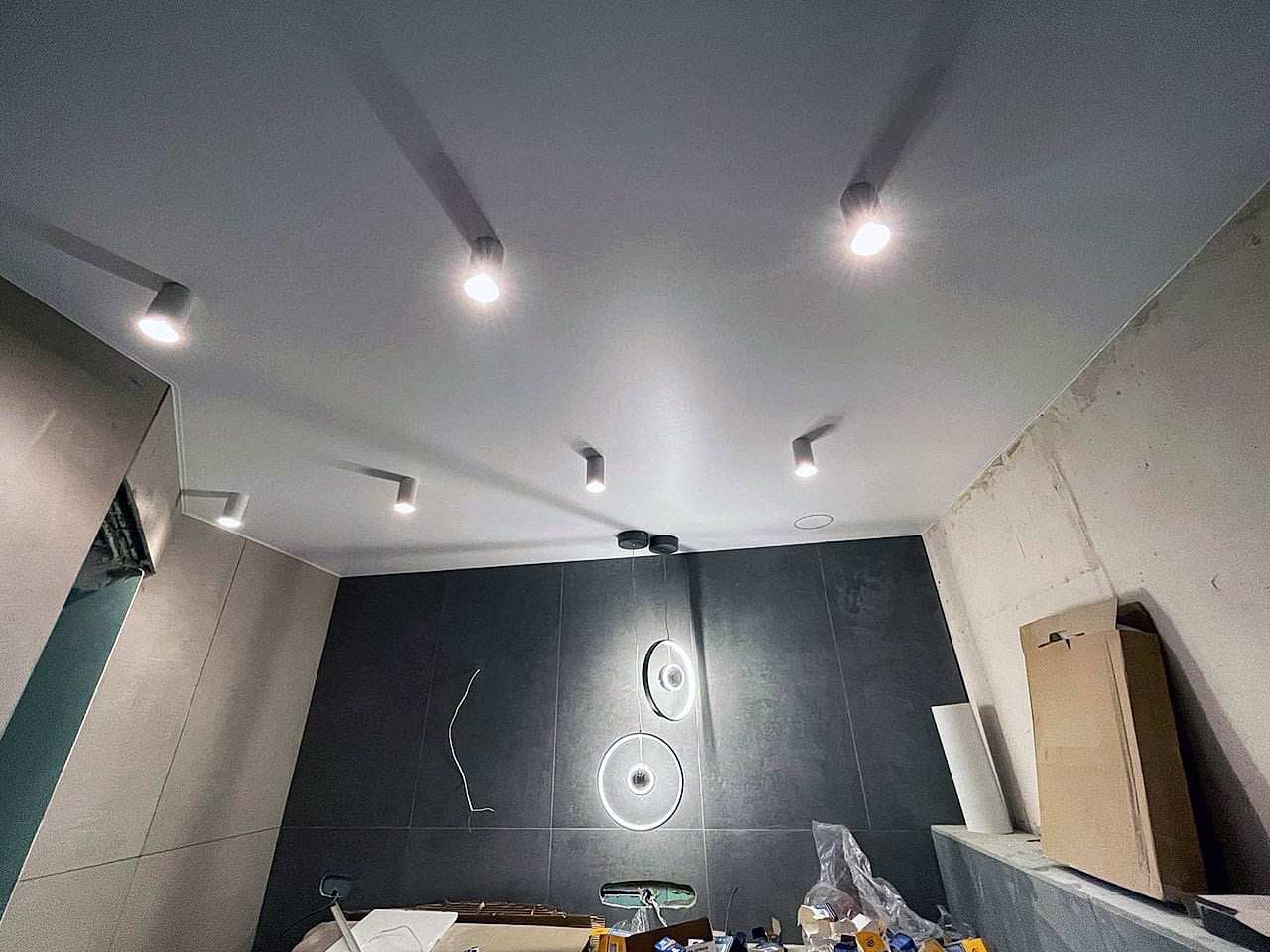 Долго ждать не придется - обычно на работы требуется всего 3-10 часов, если проект сложный и нестандартный - до 2 суток. Методика монтажа зависит от типа материала - например, полотна из ПВХ разогреваем при помощи тепловой пушки, растягиваем и PinUp к специальному профилю, расправляем и устраняем все складки. После этого устанавливаем осветительные приборы - если нужно, починим неисправную линию электропроводки, по желанию добавим скрытые карнизы, чтобы визуально увеличить пространство.